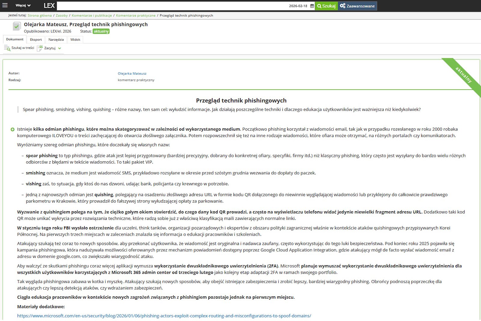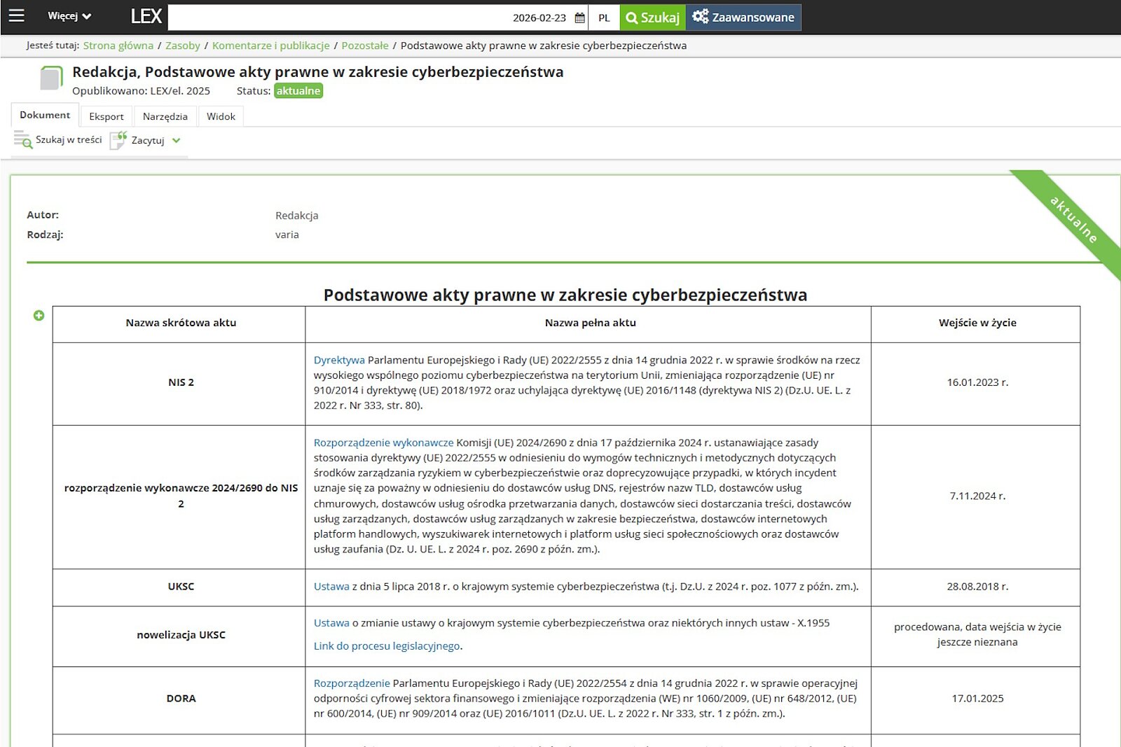 W serwisie LEX Cyberbezpieczeństwo dostępne są: