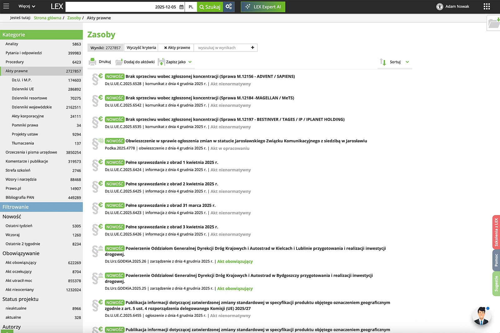 LEX Expert AI generuje odpowiedzi, korzystając z obszernej i zweryfikowanej bazy danych LEX, obejmującej: